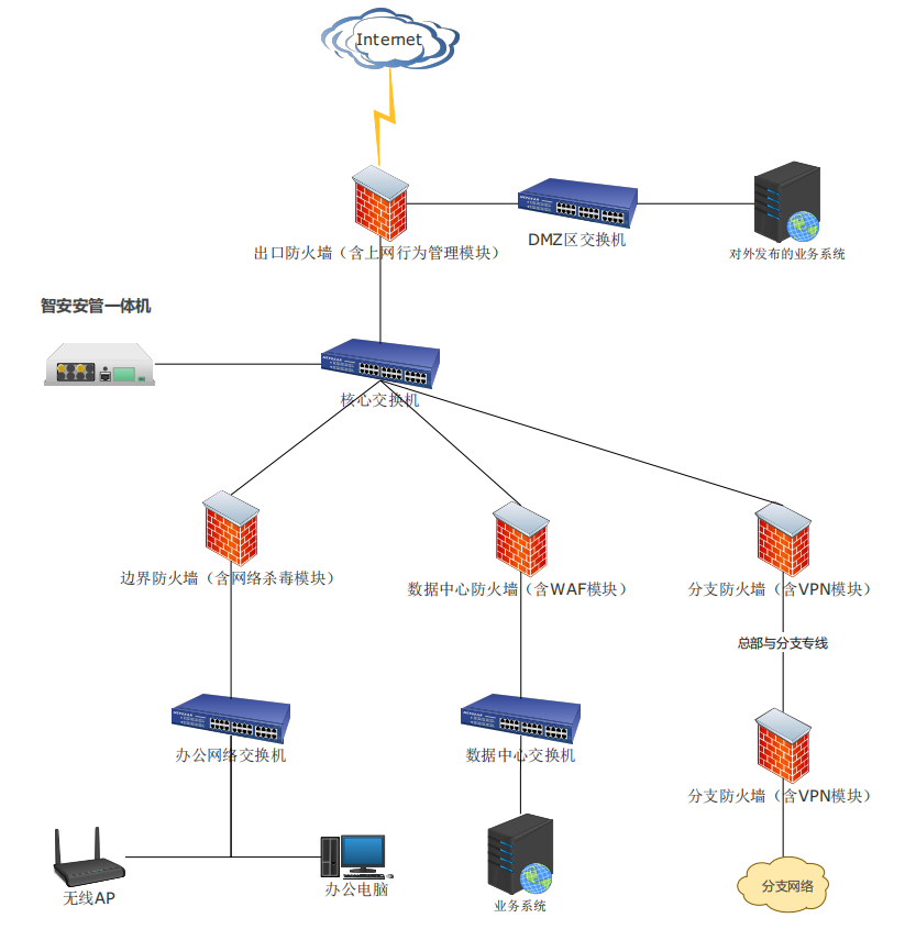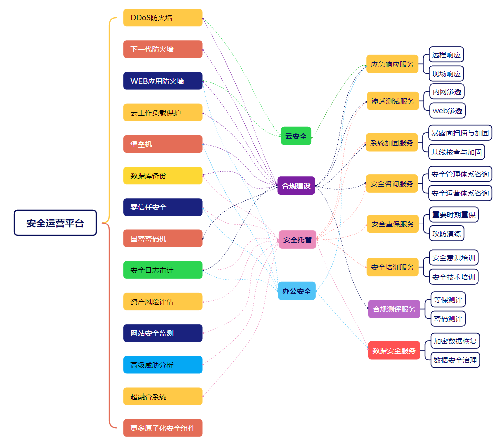 (1) 一套安全运营平台:包含漏洞与弱口令扫描、统一日志审计、流量探针与高级威胁分析、蜜罐探针与威胁狩猎、XDR端点安全、零信任安全;