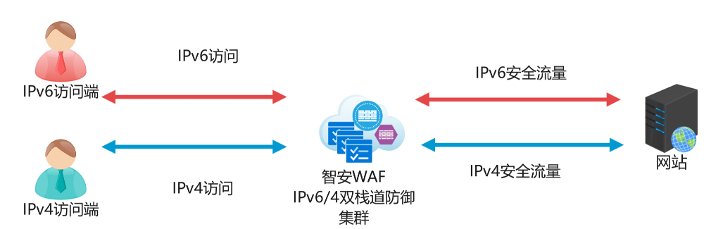 智安云WAF平台全新升级IPv6防御集群,可直接接收IPv6请求,无需转换;